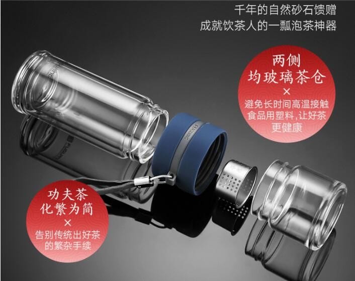 富光 泡茶師系列玻璃杯 雙層透明玻璃水杯 茶水分離杯 帶濾網商務辦公泡茶杯 深藍色290ML 見顏色