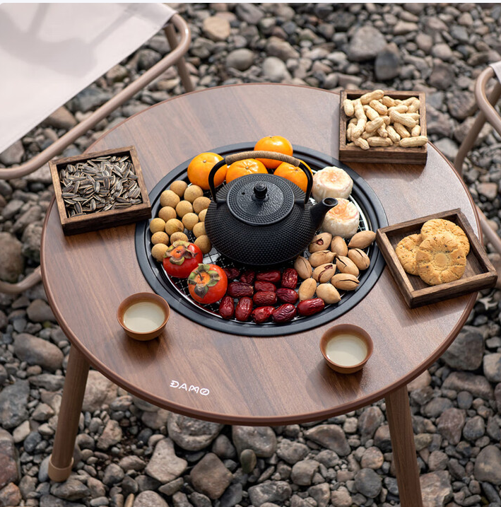 大邁圍爐煮茶燒烤爐煮茶/燒烤/桌子/取暖,多場景使用。304不銹鋼烤網,食品接觸更安心。降溫水槽,桌面外圍有效降溫。桌腿螺紋固定,裝卸無需工具。可自主搭配折疊椅組合套裝